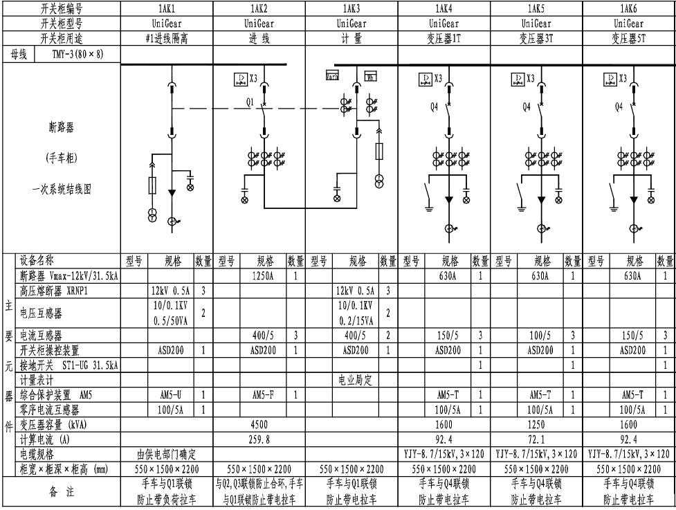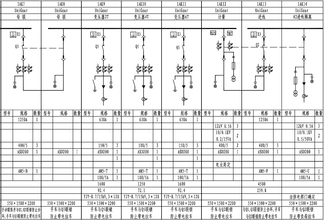 10KV雙電源變電所一次系統單線圖單母分段六變壓器