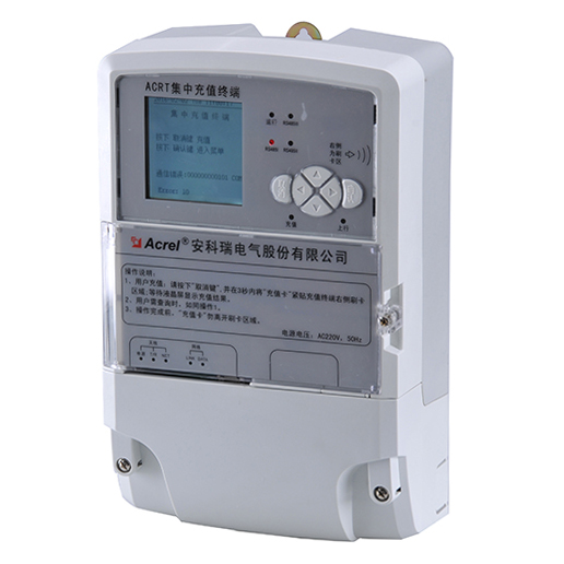 產品簡介:ACRT集中充值終端安裝在強電井外部,并與安裝在強電井內部的預付費電能表建立RS485總線通信,用戶在強電井外部的ACRT充值終端上刷射頻卡,便可自行完成對電能充值和信息查詢,無需管理人員參與,為用戶及管理方提供了方便。