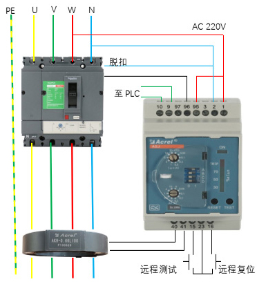 技術要求:額定剩余動作電流300mA;極限不驅動動作時間0.5s;上電工作時繼電器輸出1組常閉、1組轉換。