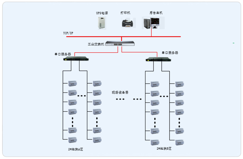 本項目為遵義奧特萊斯城市廣場的2#地塊,其中分為A區(qū)和B區(qū),A、B兩個區(qū)域,共使用了型號為DDSY1352-NK和DTSY1352-NK的內(nèi)控型預(yù)付費電表328只。安科瑞Acrel-3200遠(yuǎn)程預(yù)付費管理系統(tǒng)根據(jù)遵義奧特萊斯城市廣場實際情況進(jìn)行組網(wǎng)設(shè)計,因為物業(yè)要求電費由財務(wù)收取,所以將遠(yuǎn)程預(yù)付費管理系統(tǒng)主機(jī)設(shè)置在財務(wù)室內(nèi),而且現(xiàn)場儀表到財務(wù)室的距離都不超過300米,所以采集器都安裝在財務(wù)室內(nèi)的操作臺里,現(xiàn)場所有的內(nèi)控型預(yù)付費電表都是通過RS485總線直接入到采集器。
