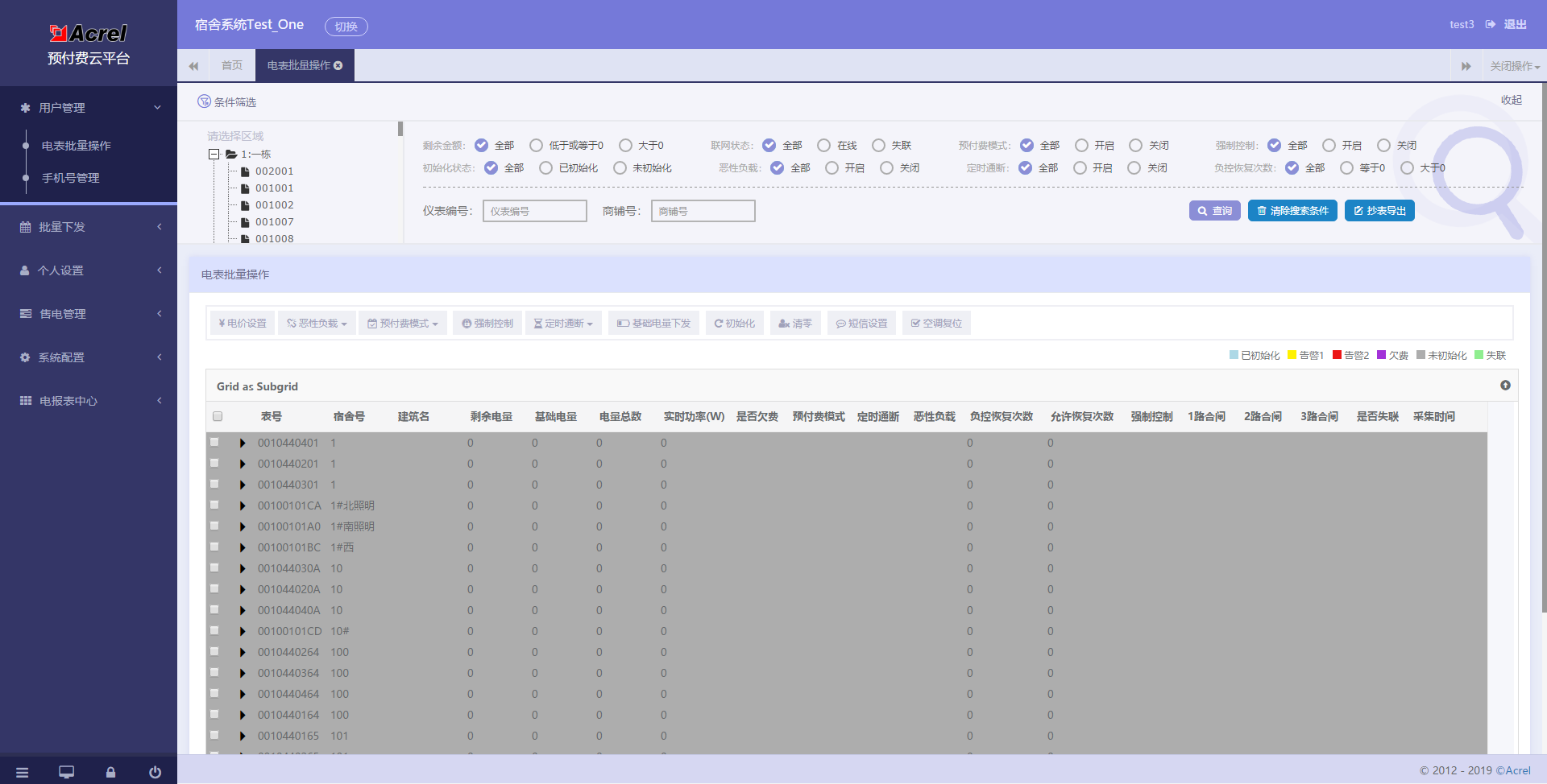 本項目共有698只單相預付費電能表DDSY1352-4DM,針對本校宿舍樓,為實現用電的智能化管理,通過安科瑞終端預付費電能計量表計來實現計量每個宿舍的用電量,以保證先收費后用電。