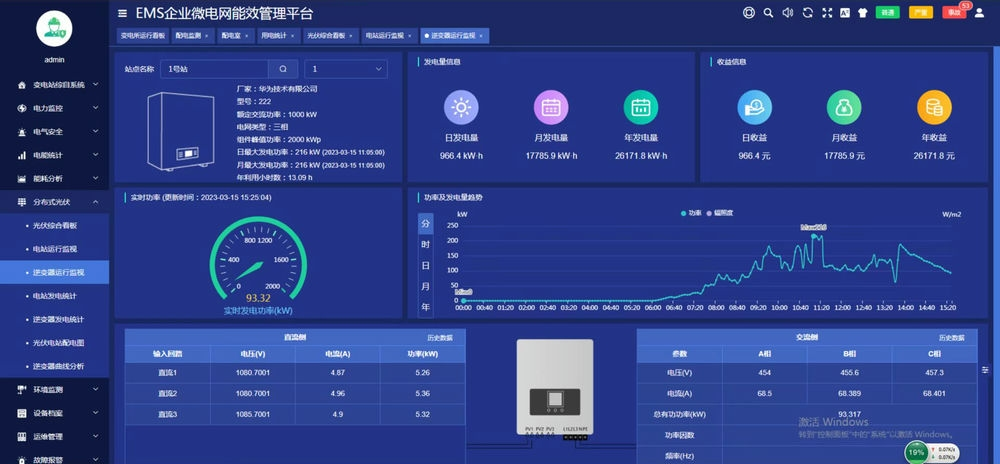 采用EMS能源管理解決方案,采集電表和逆變器的電壓電流功率電能等數據,形成電能一次系統圖,實現用電的智能化管理。在每一個配電間還加裝有煙感、水浸、門磁等來監測配電間整體環境狀態保證用電的安全性。在配電環節加裝有我們公司的電能質量和濾波裝置更好的保證了用電的可靠性。