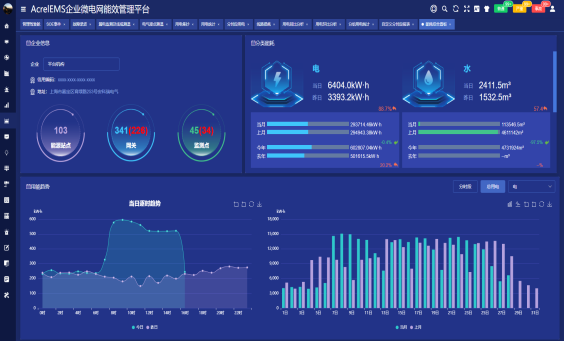 統計用電、用水、燃氣等消耗量,同環比對比分析,折標計算和CO2排放統計趨勢。