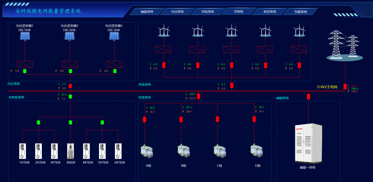 安科瑞企業微電網能量管理系統Acrel-2000MG,是安科瑞根據新型電力系統下微電網監控系統與微電網能量管理系統的要求,總結國內外的研究和生產的先進經驗,專門研制出的企業微電網能量管理系統。本系統滿足光伏系統、風力發電、儲能系統以及充電樁的接入,全天候進行數據采集分析,監視光伏、風電、儲能系統、充電樁及傳統負荷的運行狀態及健康狀況,是一個集監控系統、能量管理為一體的管理系統。該系統在安全穩定的基礎上以經濟優化運行為目標,促進可再生能源應用,提高電網運行穩定性、補償負荷波動;有效實現用戶側的需求管理,提高電力設備運行效率、降低供電成本。為企業微電網能量管理提供安全、可靠、經濟運行提供了全新的解決方案。