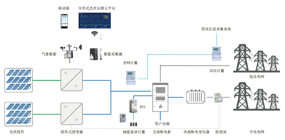 根據(jù)國家電網(wǎng)Q/GDW1480-2015 《分布式電源接入電網(wǎng)技術(shù)規(guī)定》:分布式電源并網(wǎng)電壓等級可根據(jù)各并網(wǎng)點(diǎn)裝機(jī)容量進(jìn)行初步選擇,推薦如下:8kW 及以下可接入220V;8kW~400kW可接入380V;400kW~6000kW可接入10kV;5000kW~30000kW以上可接入35kV。并網(wǎng)電壓等級應(yīng)根據(jù)電網(wǎng)條件,通過技術(shù)經(jīng)濟(jì)比選論證確定。若高低兩級電壓均具備接入條件,優(yōu)先采用低電壓等級接入。