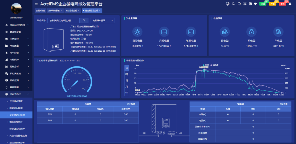 展示光伏電站發(fā)電功率,峰值功率等基本參數(shù)