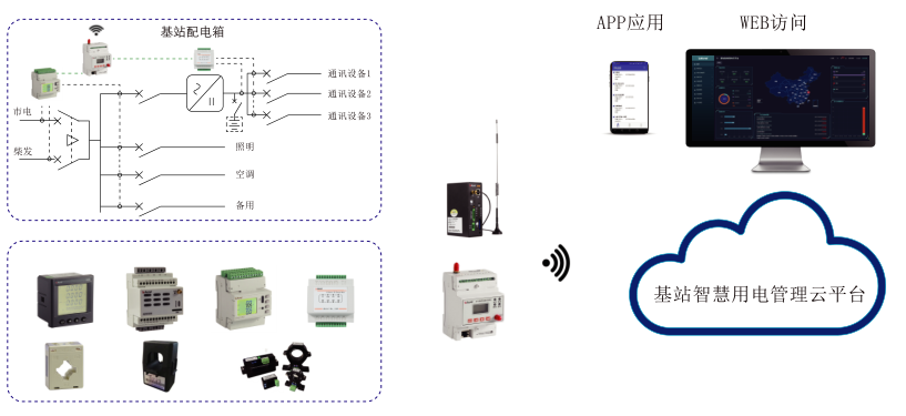 基站智慧用電云平臺通過對5G宏站和室分站點加裝交/直流智能監控設備、無線采集設備以及系統管理平臺,完成夜間無業務時段的下電操作,減少電能消耗,降低運營成本支出,以及提升通信設備供電線路狀態的實時監測保護功能;系統后臺對存儲的供電線路歷史電氣性能數據進行梳理、匯總、分析,找出故障原因,給出解決建議對策,減少后續同類故障的發生率,提升供電線路運維管控能力。