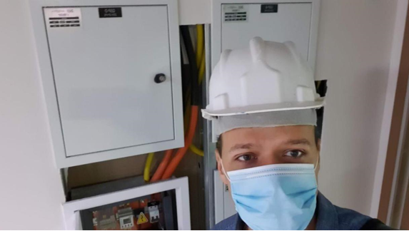 客戶帶著安科瑞送的口罩工作在醫院ICU/CCU建設項目中……