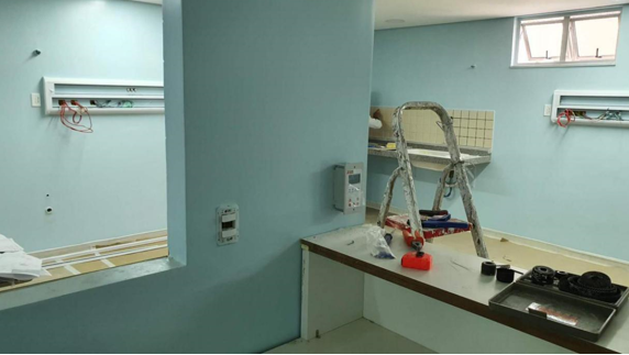 The customer is working on the ICU/CCU construction project in the hospital wearing the mask delivered by Acrel.