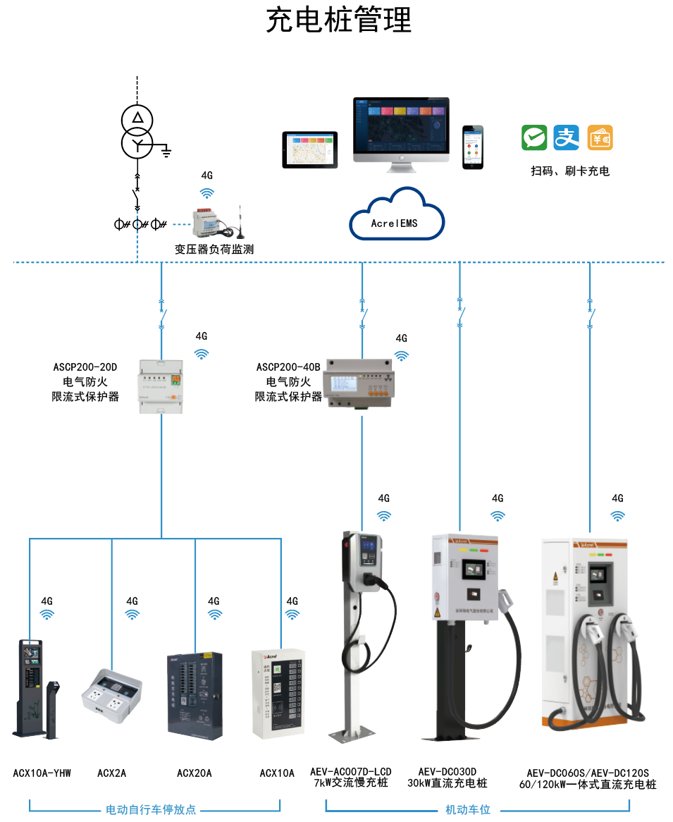 藥企員工出行有電動(dòng)汽車(chē)和電動(dòng)自行車(chē),需要提供充電樁。充電樁管理系統(tǒng)通過(guò)物聯(lián)網(wǎng)技術(shù)對(duì)接入系統(tǒng)的充電樁站點(diǎn)和各個(gè)充電樁進(jìn)行不間斷地?cái)?shù)據(jù)采集和監(jiān)控,解決廠區(qū)充電樁使用、監(jiān)控問(wèn)題。電動(dòng)自行車(chē)充電可采用投幣、掃碼充電方式,電動(dòng)汽車(chē)支持IC卡和掃碼充電方式。充電樁系統(tǒng)可實(shí)時(shí)遠(yuǎn)程完成啟動(dòng)充電、強(qiáng)制停止、單價(jià)設(shè)置等控制指令,用戶(hù)可通過(guò)APP、微信、支付寶小程序掃描二維碼,進(jìn)行支付后,系統(tǒng)發(fā)起充電請(qǐng)求,控制二維碼對(duì)應(yīng)的充電樁完成電動(dòng)汽車(chē)的充電過(guò)程。同時(shí)對(duì)各類(lèi)故障如充電機(jī)過(guò)溫保護(hù)、充電機(jī)輸入輸出過(guò)壓、欠壓、絕緣檢測(cè)故障等一系列故障進(jìn)行預(yù)警;能夠遠(yuǎn)程控制,提供財(cái)務(wù)報(bào)表和數(shù)據(jù)分析等功能。