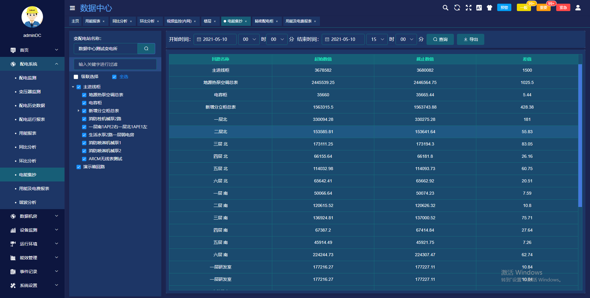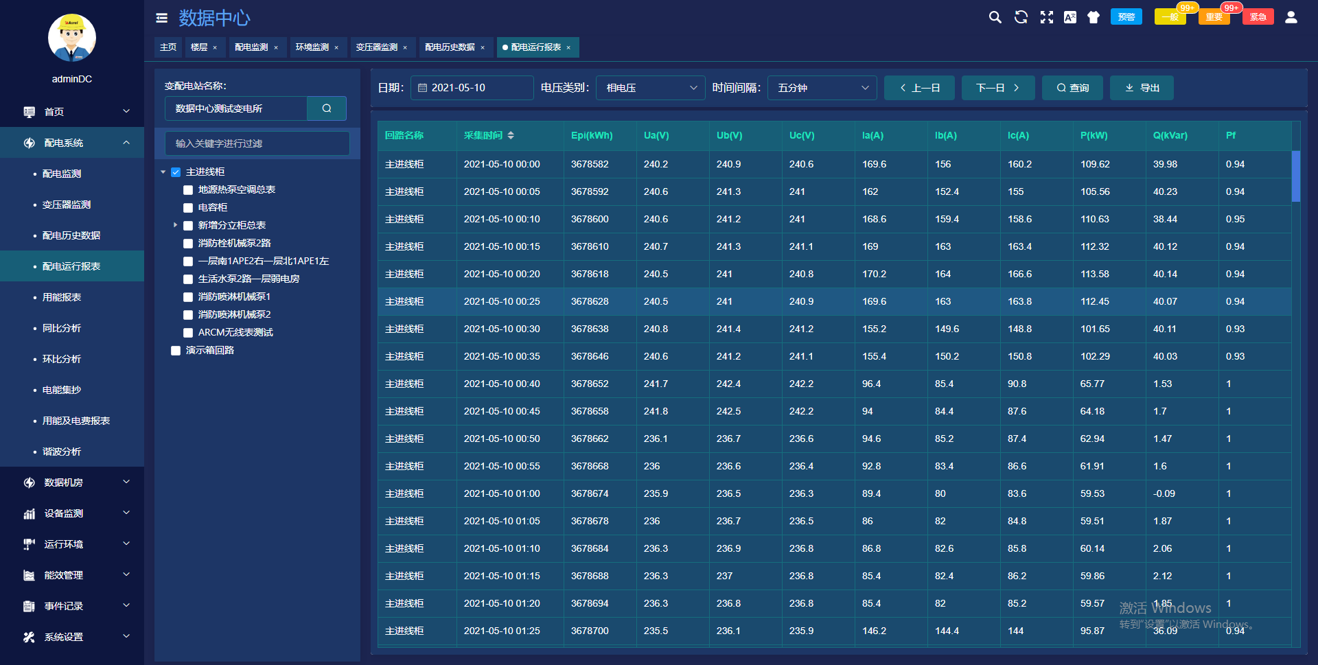 配電運行報表將所有回路的所有參數(shù)顯示在報表中,以便用戶整體監(jiān)測回路運行狀態(tài)。