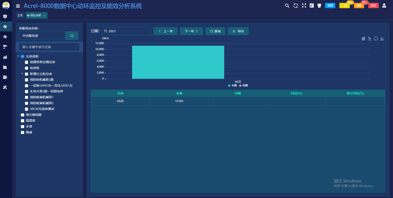 顯示各個用電回路。每日、每周、每月的環(huán)比用能情況。顯示增長或者下降比例。