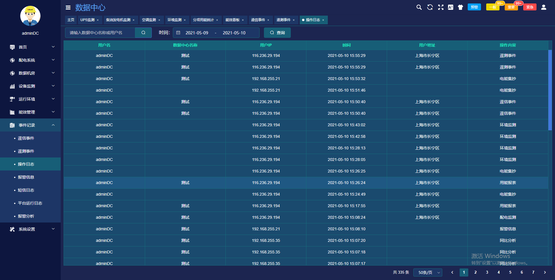 顯示當前數(shù)據(jù)中心下的用戶,操作該平臺的操作記錄。
