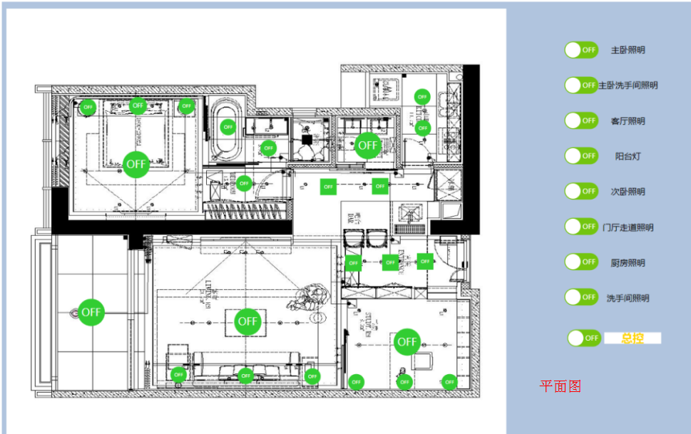 點擊調光總控,可以對多個照明回路實現調光控制。