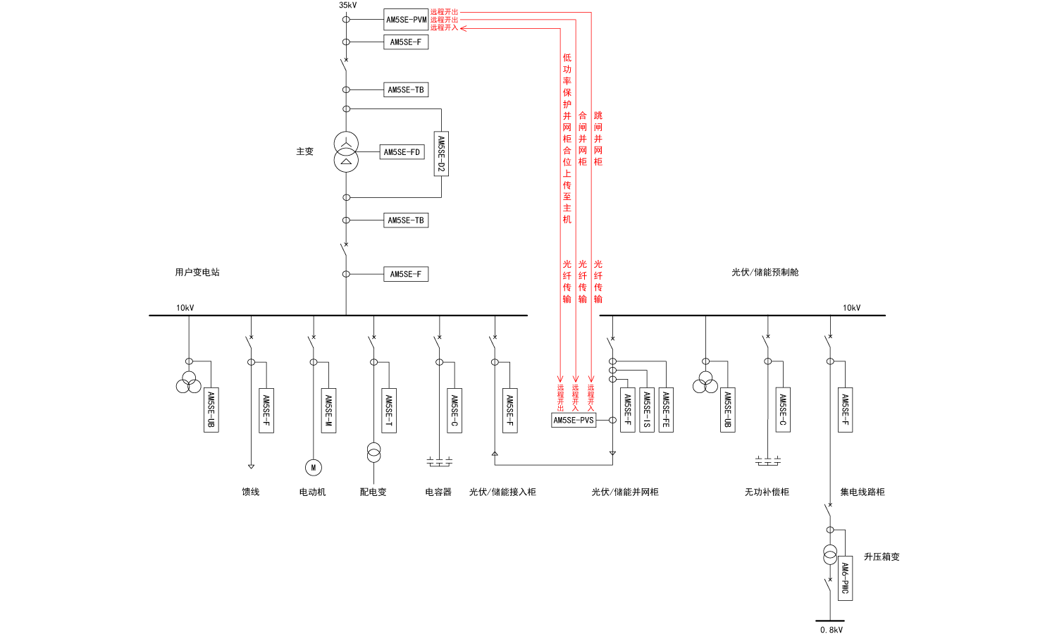 主從機光纖直跳方案逆功率跳閘/四段低功率跳閘
