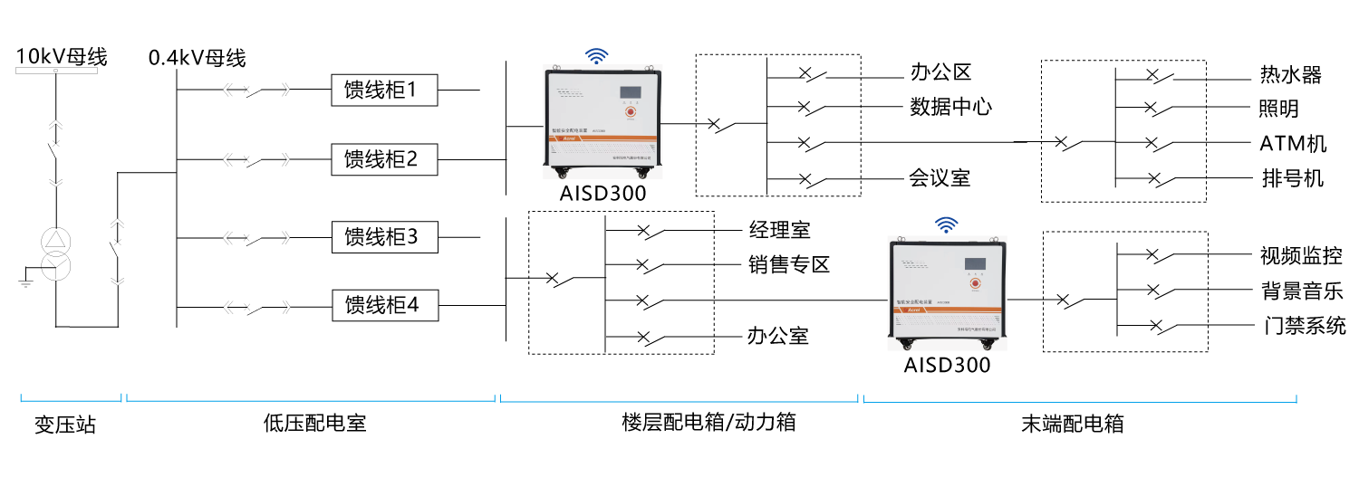 AISD300系列三相智能安全配電裝置是為低壓配電側開發的一款智能安全配電產品,產品主要針對低壓配電系統人身觸電、線路老化、短路、漏電等原因引起電氣安全問題而設計。產品通過隔離技術,將市電轉化為安全電,并通過安全電給用電設備供電。使供電系統具有火線接地不起火,不漏電,單相接地故障不斷電,以及人體誤觸火線不傷人等功能。能從根本上解決觸電傷人,接地打火的電氣安全問題。