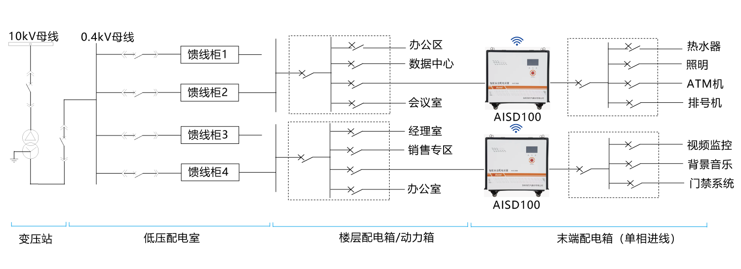 AISD100系列單相智能安全配電裝置是為低壓配電側開發的一款智能安全配電產品,產品主要針對低壓配電系統人身觸電、線路老化、短路、漏電等原因引起電氣安全問題而設計。產品通過隔離技術,將市電轉化為安全電,并通過安全電給用電設備供電。使供電系統具有火線接地不起火,不漏電,單相接地故障不斷電,以及人體誤觸火線不傷人等功能。能從根本上解決觸電傷人,接地打火的電氣安全問題。