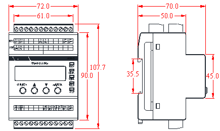 產品采用標準35mm導軌安裝,插拔端子,方便安裝和拆卸;