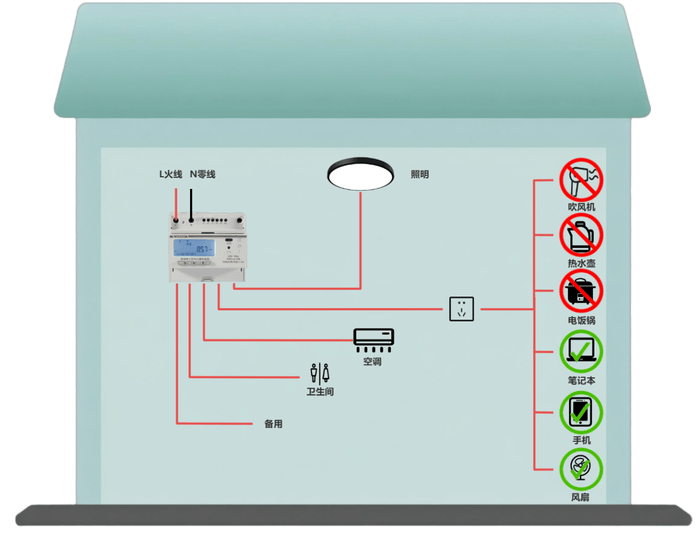 惡性負載識別檢測大功率違規電器、移相插座并跳閘,生成記錄和報警,支持白名單設置。