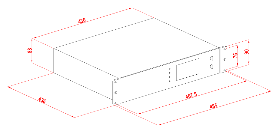 | 尺寸(長寬高) | 2U標準機架式機箱:482mm×443mm×89m | |