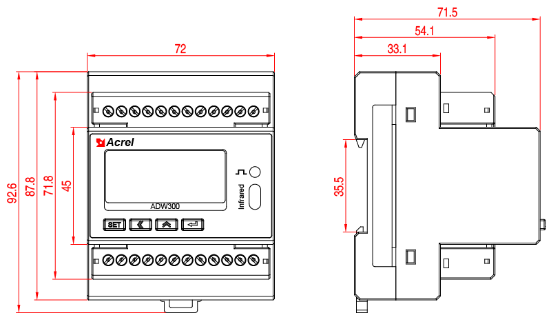 | 安裝方式 | 標(biāo)準(zhǔn)35mm導(dǎo)軌式安裝 | |||||||
