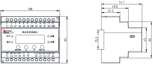 可監測12路剩余電流,每路監測剩余電流范圍為1mA~5A。